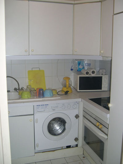 kitchen fully equipped and a large bathroom with a bathtub and