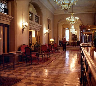 Hotel Regina, and in particular its well-lit hall and its oak and